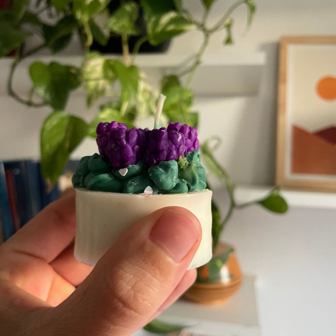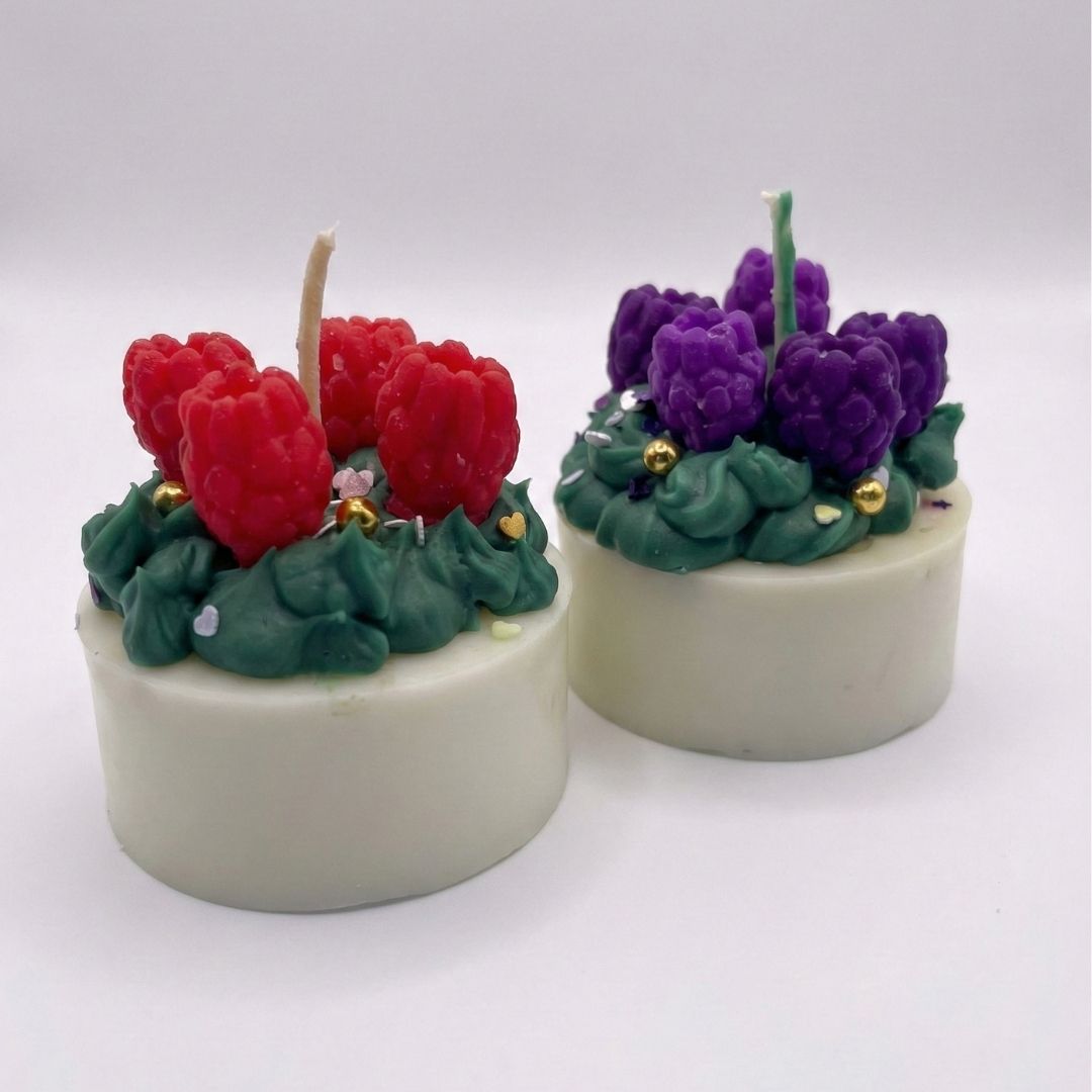 Pack de 5 velas de molde de cera de soja con forma de deliciosas mini tortitas. Cada una está decorada con detalles de frutos rojos en la parte superior, logrando un realismo gourmet increíble. Ideales para souvenirs originales o para decorar la hora del té.