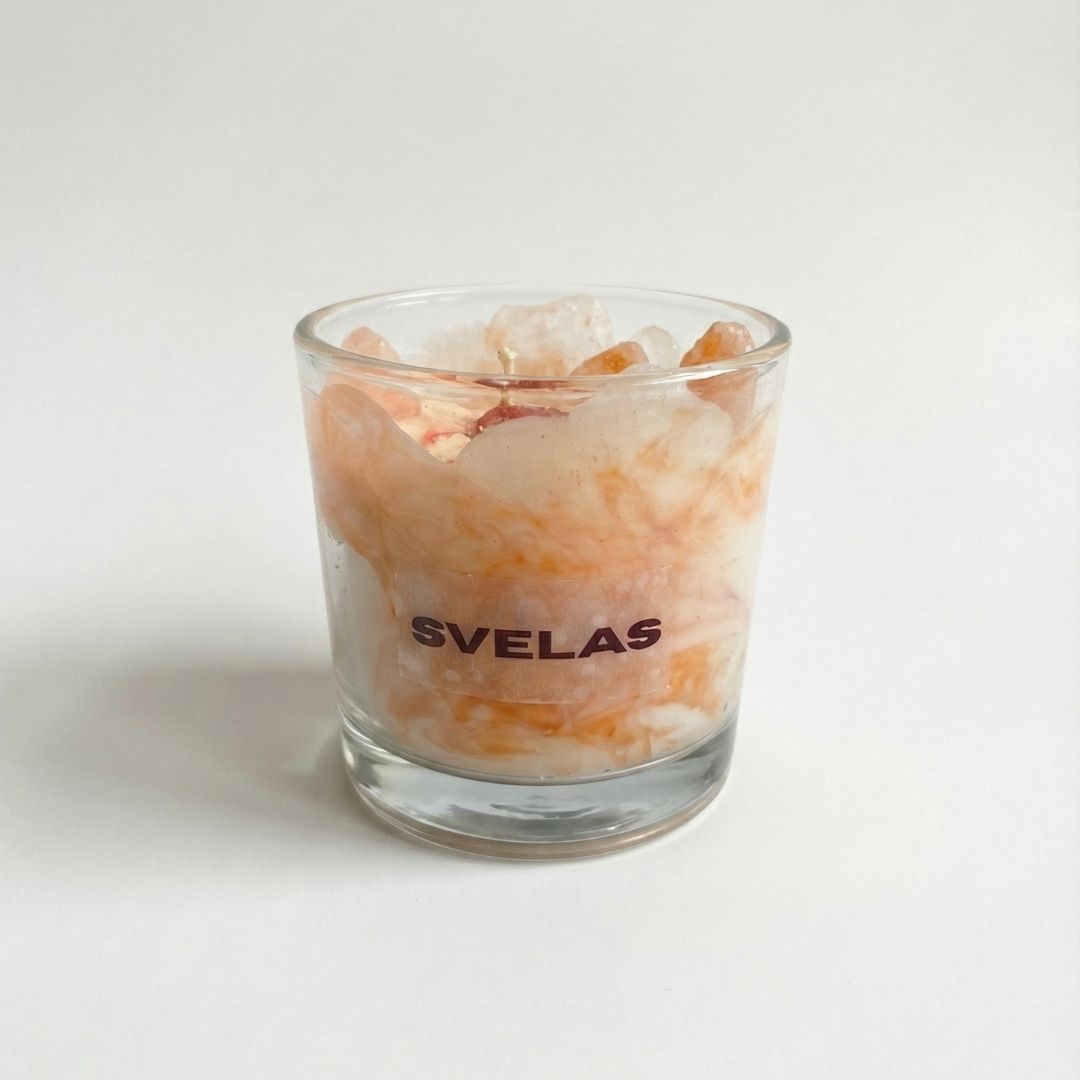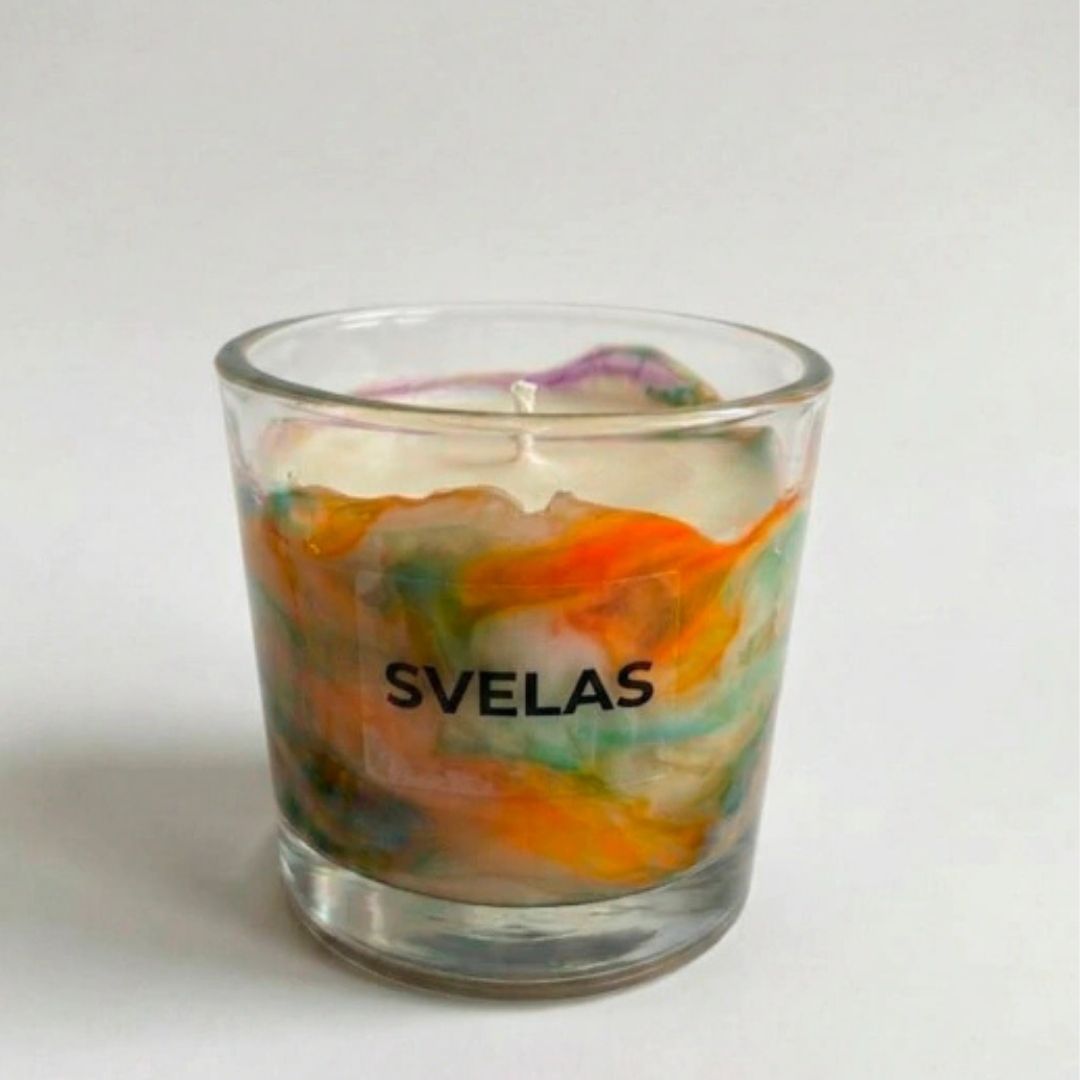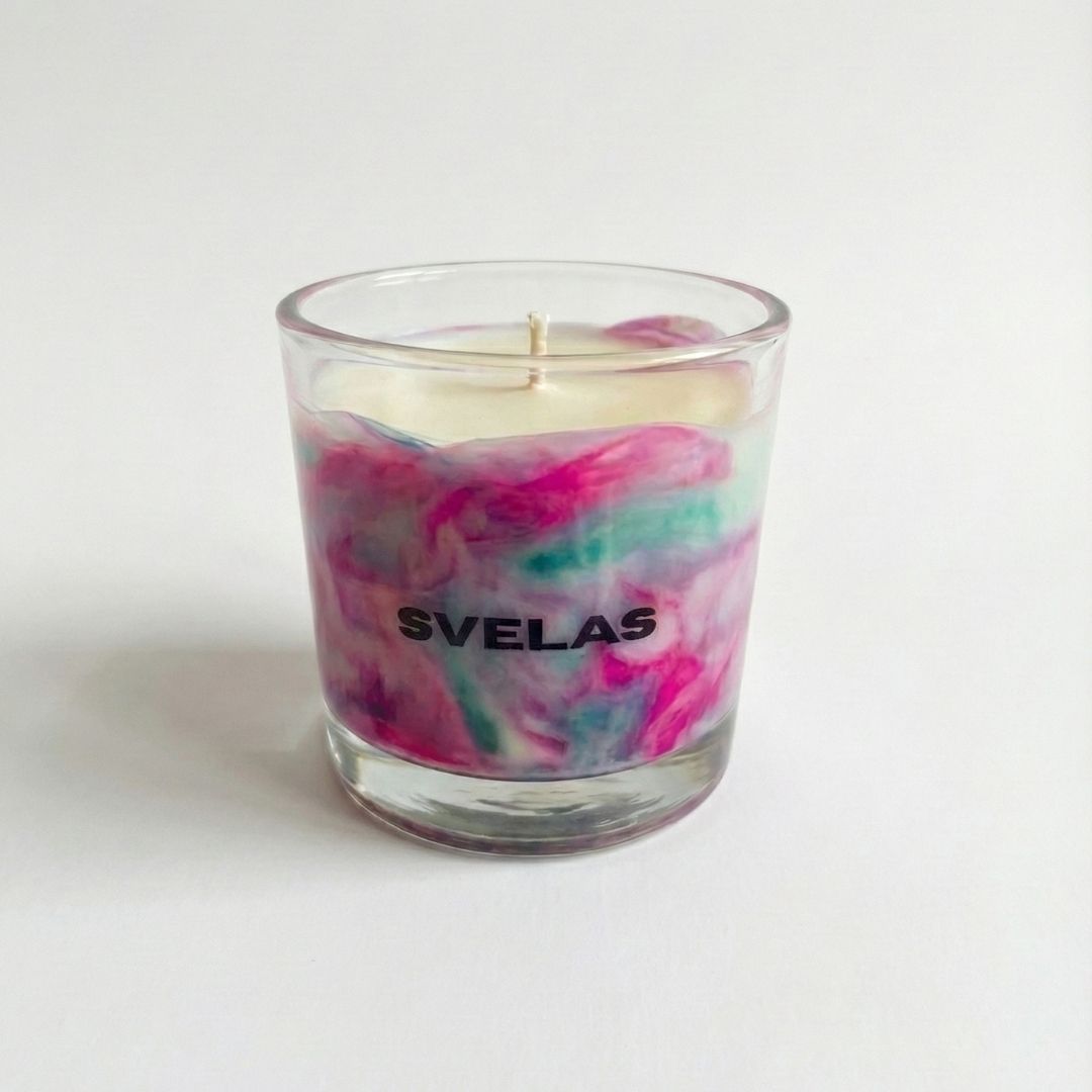 La Vela Marmolada de SVELAS es nuestra creación más artística. Utilizamos una técnica de vertido a dos temperaturas para lograr que los colores se fundan con la cera blanca, creando vetas orgánicas que recuerdan al mármol de Carrara o al granito.